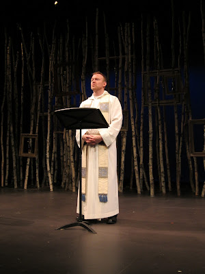 Last night the cast appeared at Will Clark's weekly lively event at the Ritz. While Will (Fr. Mark) emceed and I called bingo numbers, Dean (the Bishop), Ken (Fr. Ed) and Jimmy (Fr. John) worked the crowd.